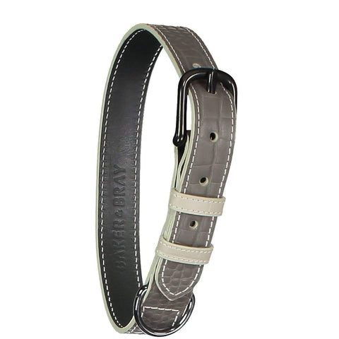 Baker & Bray | Paris Croc Dog Collar | Steeple Grey/Stone